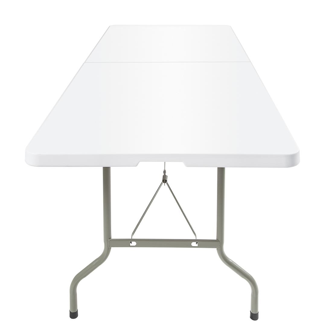 Easy to carry and quick to set up – this 8ft folding table from Bolero is perfect for party functions or buffets. Suitable for indoor or outdoor use, the table can be assembled or packed away with the minimum of fuss.A highly durable polyethylene top is supported by an incredibly strong steel frame and legs to give you a safe and stable surface for displaying food. When not in use, the foldable table is lightweight and easy to transport thanks to its carry handles and built-in closure mechanism.Actual colours and design may vary slightly, due to different screen settings, the lighting in the installation location, slight differences in product finishes over time and other factors. The customer is responsible for viewing items before purchase and any return for these reasons will be treated as change of mind.