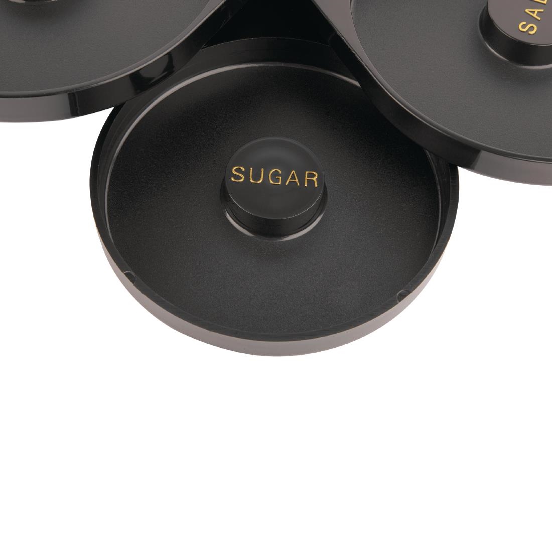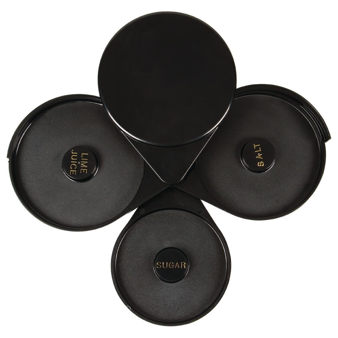 Offering a simple and effective solution for your bar, this glass rimmer is made from plastic and comes in a stand alone design. Three sectors feature on this item; one for lime juice, one for salt and one for sugar, all of which are labelled in the middle to stop confusion when in use. This fold out design is completed with a lid to ensure that it stays clean when it is not in use.
