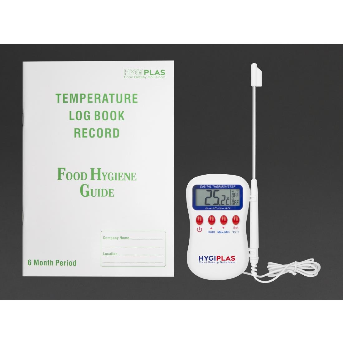This kit comes equipped with the Hygiplas Multi – Purpose Stem Thermometer (F338) and Hygiplas Temperature Log Book (J201)Ensure your food is cooked at the right temperature with the Hygiplas multi-stem thermometer. With a temperature range of -50°C to +200°C, the probe is ideal for obtaining precise readings of refrigerated or hot ingredients, ensuring your food is perfectly prepared and safe for consumption.Keep a log of all the critical temperatures in your kitchen with this temperature record book from Hygiplas. Produced with temperature, time and name columns, the log book helps you accurately record temperature checks to ensure your kitchen is hygienic and running according to regulations.