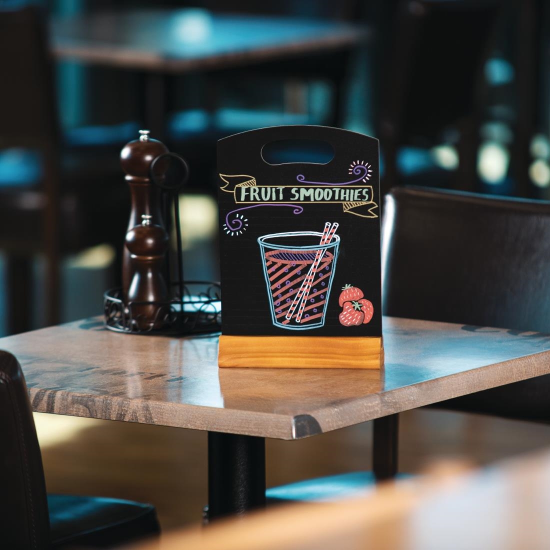 Looking to display clear messaging on your table tops in style? Then this 320 x 212mm, freestanding blackboard from Olympia is ideal for you. With a sturdy pine base and arched top, this blackboard adds a rustic and unique touch to your table services – ideal for sprucing-up any pub, restaurant or bistro. The sturdy construction and solid base helps to keep the blackboard in excellent condition throughout many services – reducing your repair or replacement cost in the long-run. Thanks to an easy-to-clean construction, the blackboard allows staff to wipe-clean outdated messages after service, leaving it ready for new messages to be added.