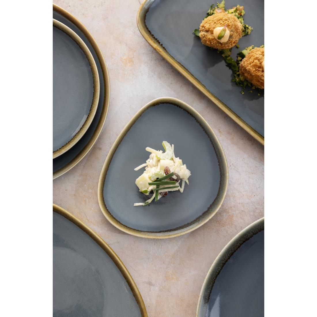The perfect size for presenting small, appetizing, homemade side dishes, these rounded triangle Ocean plates from Olympia’s Kiln collection are perfect for making your table setting stand out from the crowd. Artisans use a specially developed glaze that is able to react with the naturally occurring minerals in the clay, ensuring each piece is truly unique in its appearance.