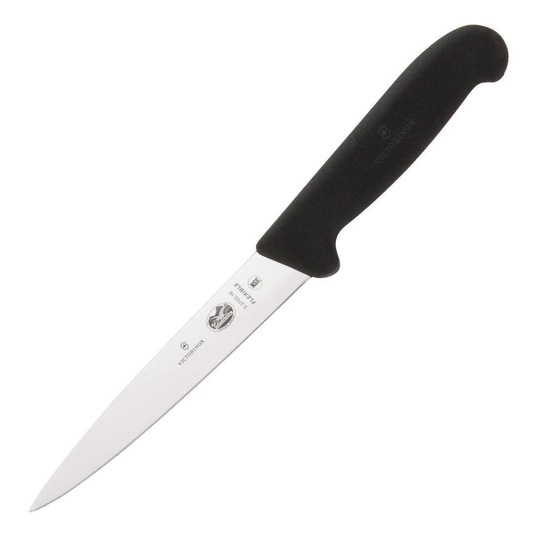 Victorinoxs filleting knife is fully forged, so its crafted from one piece of metal which means its incredibly strong. Its responsive too, and thats all down to the design of the knife. Its smooth transition from handle to blade gives you a confident grip, so you can cut white flaky fish without it falling apart. 6 Flexible Blade. Black Handle