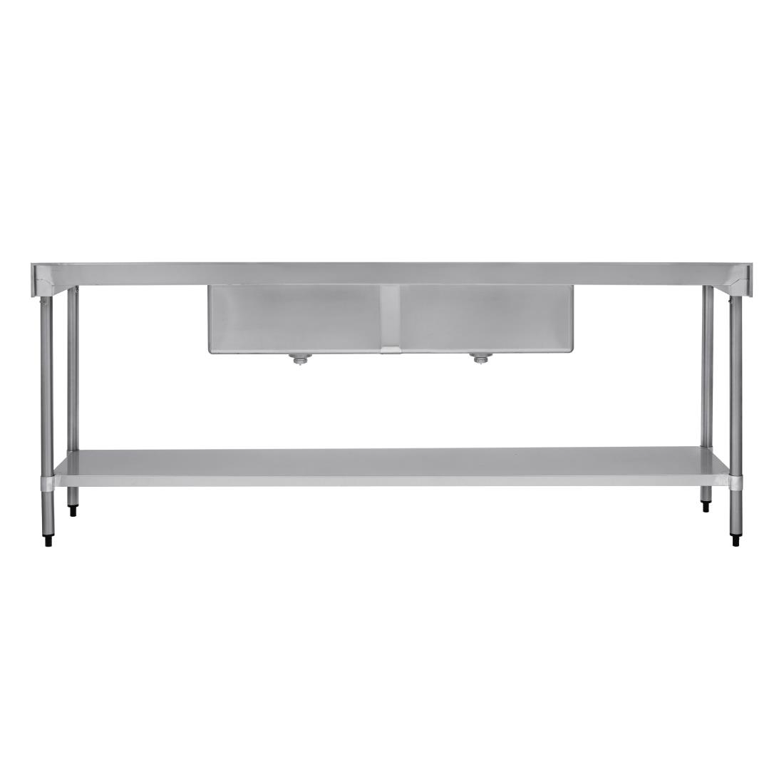 This high quality stainless steel sink comes supplied with a stand, shelf and waste guard. This particular model features a double centre bowl and double drainer (2400 x 700mm) for maximum capacity. The galvanised steel under shelf will provide you with extra essential storage space. Delivered flat packed for easy assembly. Taps not included.