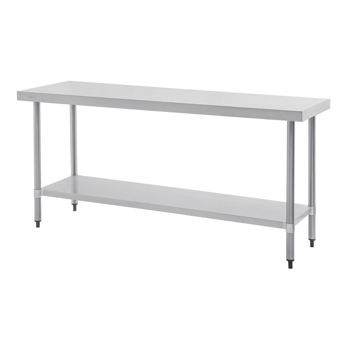 Looking for a prep table that is perfect for commercial kitchens? Then the Vogue stainless-steel prep table will be the product for you.The reinforced steel legs are highly durable allowing the table to easily hold up to 300kg of weight at once, and the stainless-steel creates a naturally hygienic surface making it easy to clean.Also, the undershelf means chefs can store ingredients or cookware at close vicinity, maximising space in the kitchen and giving easy access for chefs.The rubber feet prevent scratches on the floor by stopping the table from moving around when using.